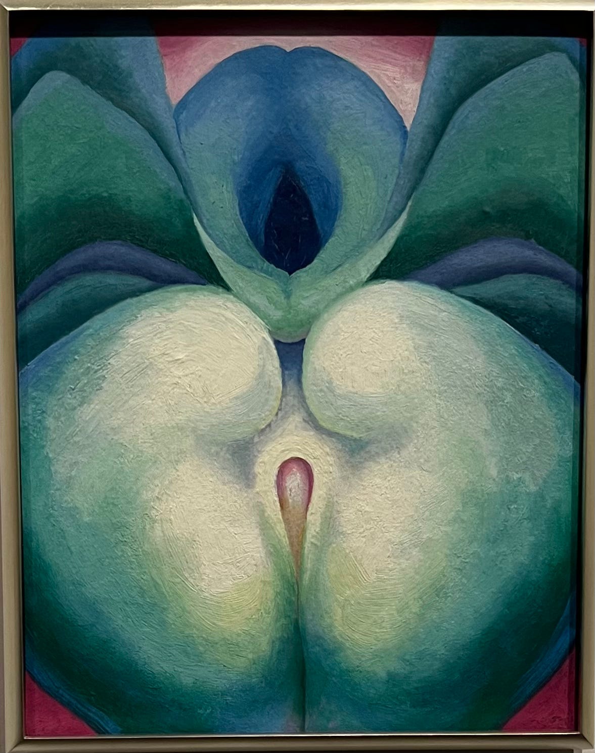 A French critic, during an exhibit of O’Keefe’s work at the Centre Pompidou in 2021 wrote “The question often comes up of whether O’Keeffe’s flowers were symbols of female genitalia, something she was often accused of – or praised for – depending on the commentator’s point of view. She always denied any such intentions, claiming that she was just painting flowers and that any sexual interpretations of her work were coming not from her but from the eye of the beholder.”